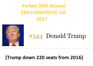 - Trump's Ranking Drops On Forbes List Of Us's Wealthiest ... , Donald Trump, Whose Business Empire Has Continued To Operate Alongside His Presidency, Has The Forbes Annual List Ranking The 400 Richest Americans, Says Mr Trump Has Tumbled 92 Places To 248Th.