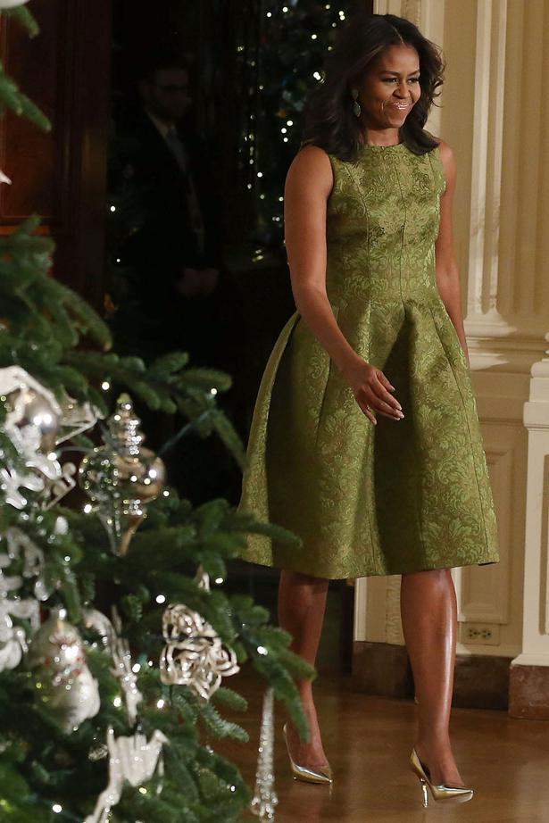 - Michelle Obama Sparkles In An Emerald Green Custom Dundas ... : Melania Trump Puts Her Modeling Skills To Use In The White House's Newest Holiday Video.